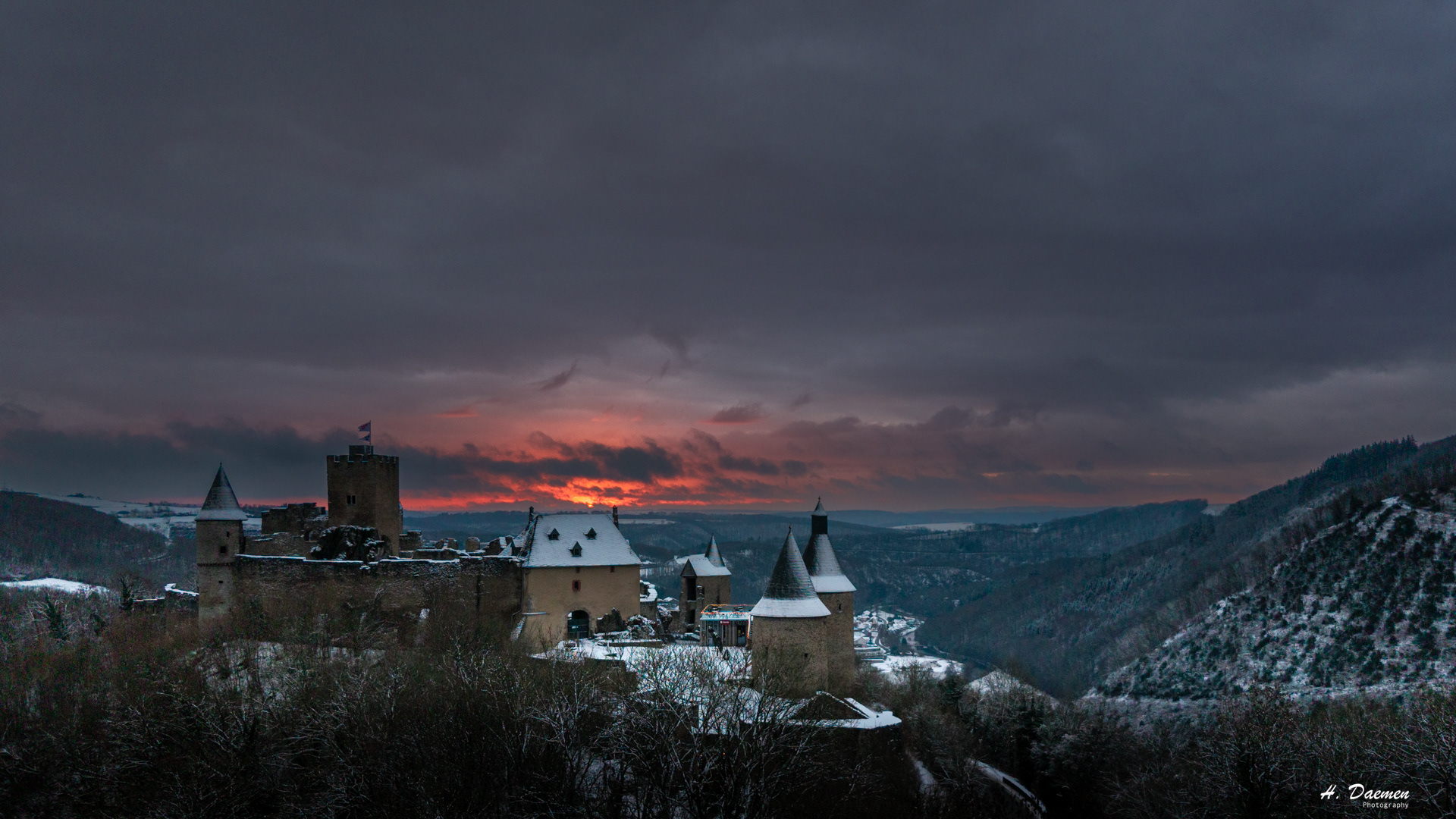 Luxembourg castles in fog